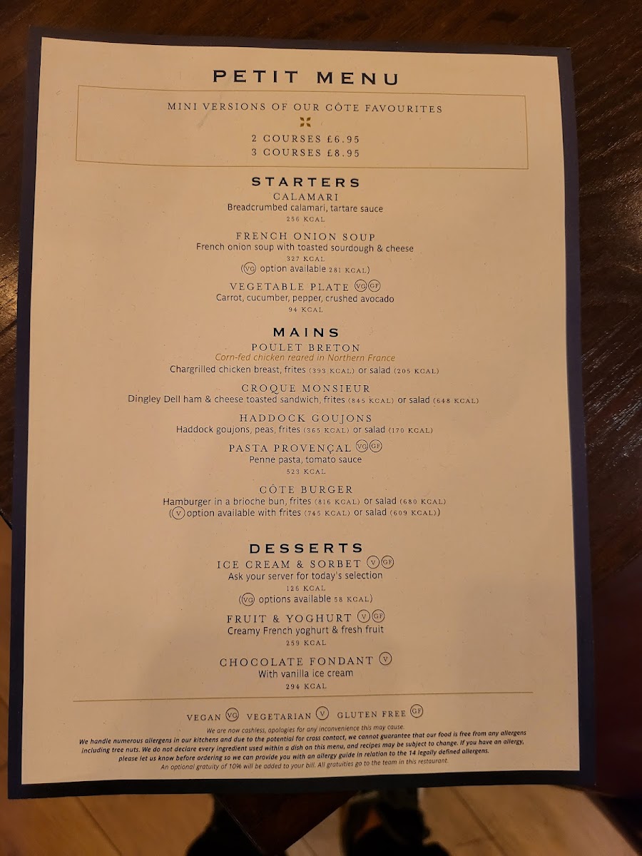 Côte Woking Menu